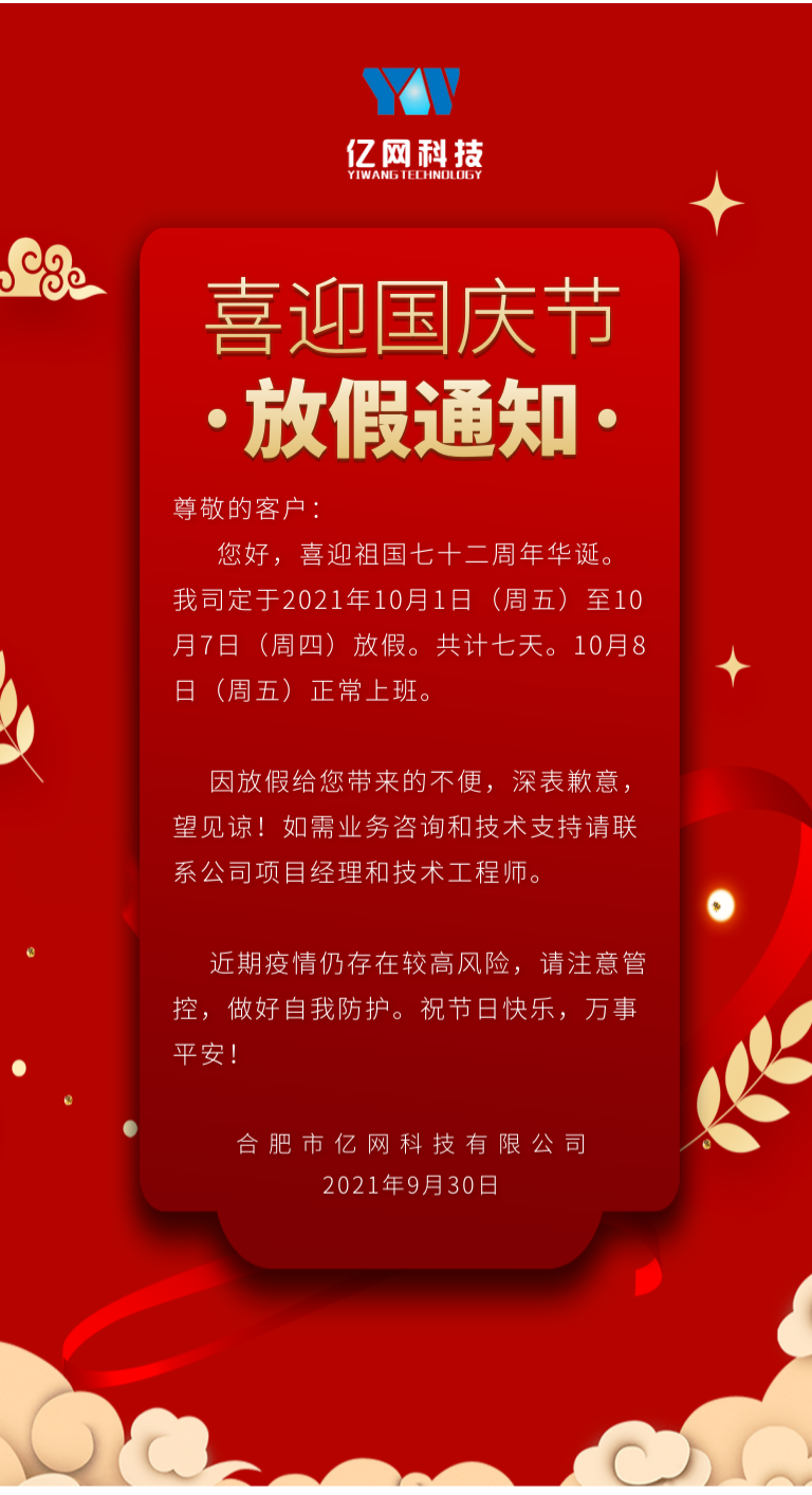 合肥市億網(wǎng)科技有限公司國(guó)慶放假通知