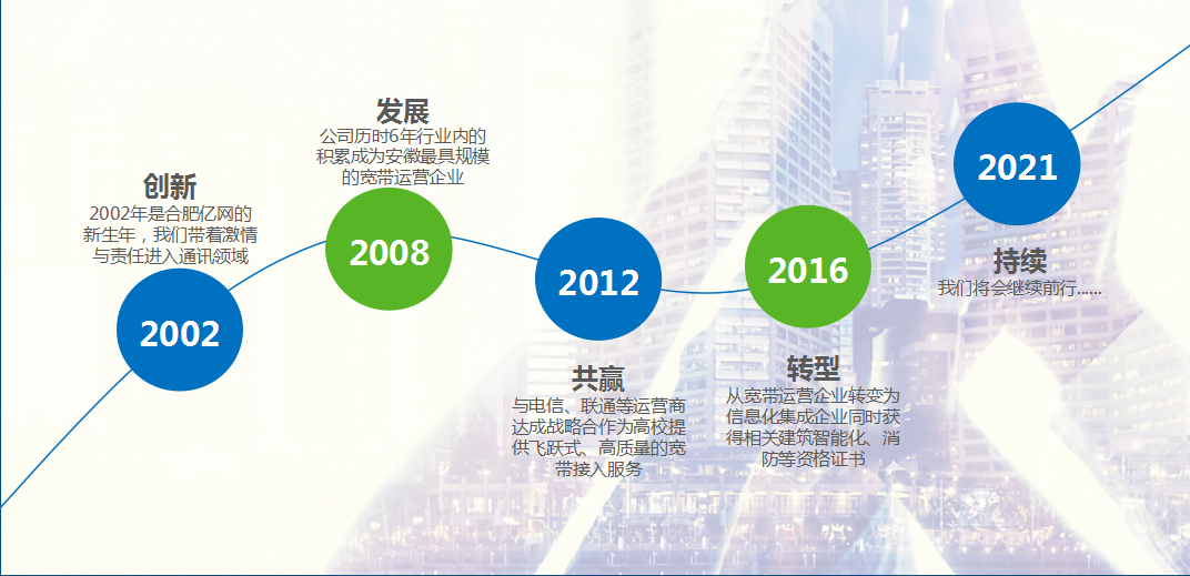 合肥市億網(wǎng)科技有限公司于2002年新生于合肥市區(qū)重點(diǎn)高校園區(qū)內(nèi),起始團(tuán)隊(duì)只有數(shù)名成員。歷經(jīng)二十載的歲月沉淀,回望來(lái)路發(fā)展道路幾多艱難,億網(wǎng)人披荊斬棘,努力奮斗,緊跟時(shí)代發(fā)展的腳步,成功轉(zhuǎn)型為以“互聯(lián)網(wǎng)+”為支撐平臺(tái)的智能化科技型公司。